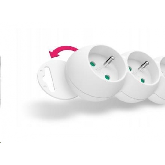 Vďaka otočeniu zásuviek o 45° je možné používať aj objemnejšie napájacie adaptéry alebo uhlové zástrčky. Výsuvná slučka v hornej časti zásuvkového modulu umožňuje zavesenie alebo pevnú inštaláciu na stenu (napr. v dielňach a garážach).