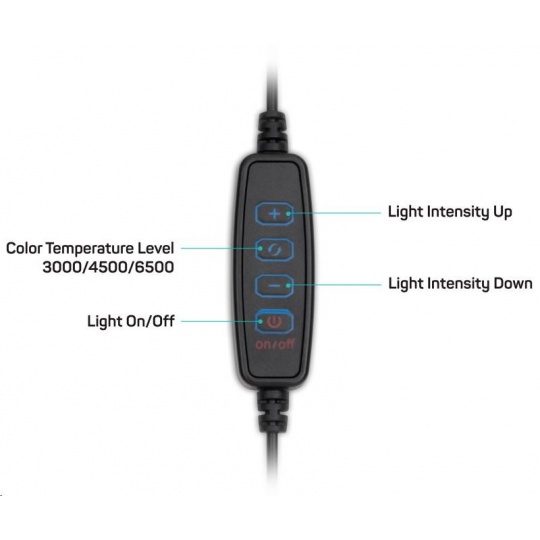 | Obsah balenia | - Kruhové LED svetlo - Prívodný kábel s diaľkovým ovládaním - Flexibilný držiak na mobilný telefón - Stojan s guľovou hlavou - Návod na obsluhu |