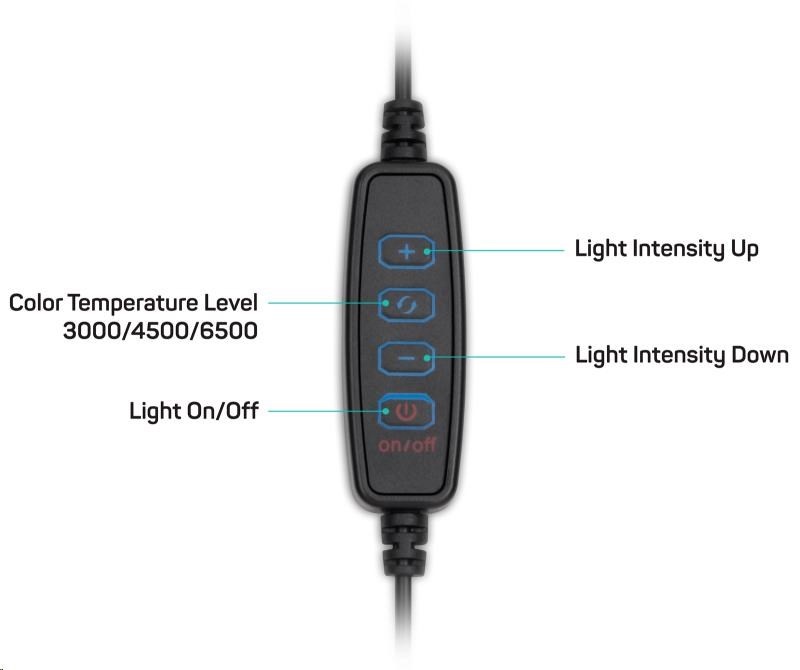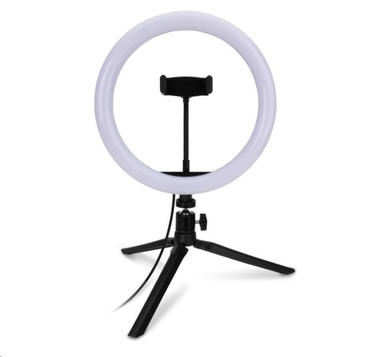 | Obsah balenia | - Kruhové LED svetlo - Prívodný kábel s diaľkovým ovládaním - Flexibilný držiak na mobilný telefón - Stojan s guľovou hlavou - Návod na obsluhu |