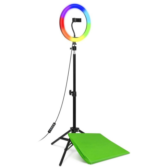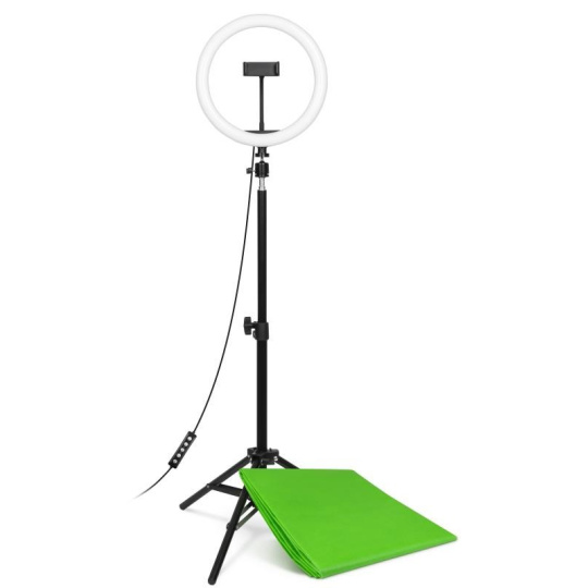 | Obsah balenia | Kruhové LED svetlo Prívodný kábel s diaľkovým ovládaním Flexibilný držiak mobilného telefónu Stojan s guľovou hlavou Green screen Návod na obsluhu |