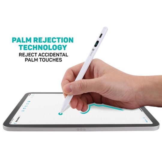TouchPen disponuje technologií "Palm Rejection", která umožňuje psát a kreslit na dotykovém displeji tabletu s opřenou rukou, aniž by tato ruka zanechávala nežádoucí čáry nebo znaky. Technologie je navržena tak, aby automaticky ignorovala dotyky dlaně, zatímco zaznamenává dotyky a příkazy dotykového pera. Inteligentní hrot umožní snadnou úpravu a regulaci tloušťky čar pouhým nakloněním pera. Díky LED displeji budete mít vždy dokonalý přehled o stavu baterie. Balení obsahuje jeden vyměnitelný hrot navíc pro případnou výměnu.