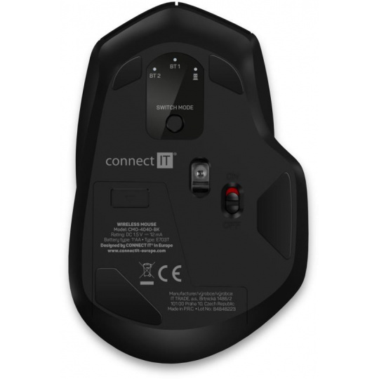 CONNECT IT Trojitá bezdrôtová myš SmartSwitch, 2.4 GHz a Bluetooth 5.0, čierna