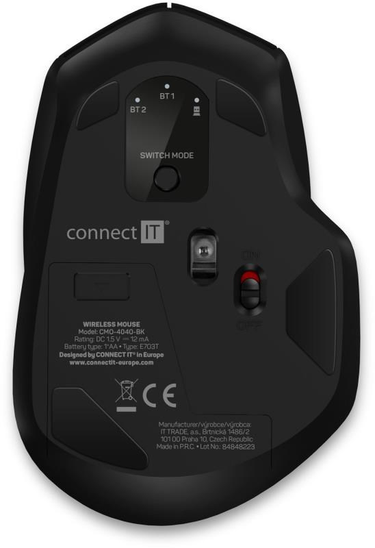 CONNECT IT Trojitá bezdrôtová myš SmartSwitch, 2.4 GHz a Bluetooth 5.0, čierna