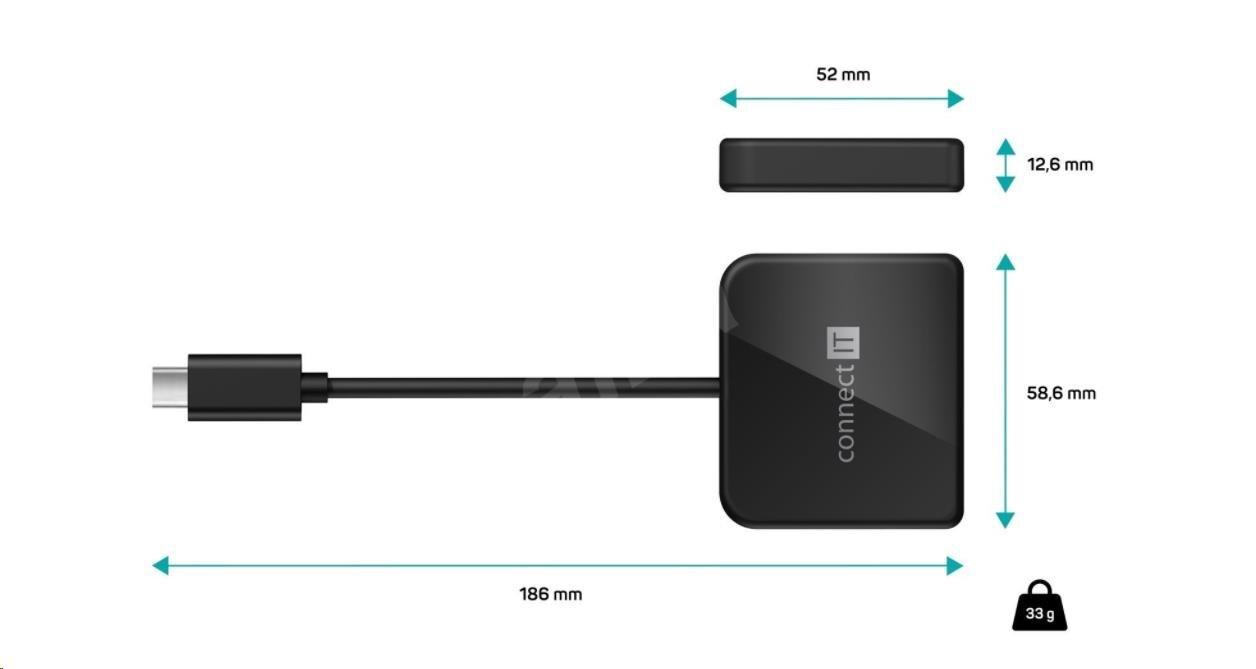 CONNECT IT CHU-7050-BK USB-C hub 3v1 (USB-C, USB-A, HDMI), čierny
