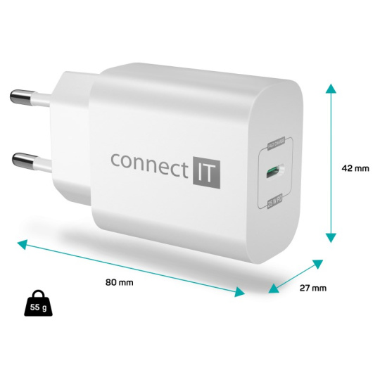 CONNECT IT Voyager2 nabíjecí adaptér 1×USB-C, 25W PD, bílá