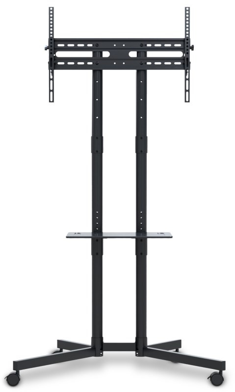 Veľmi praktický pojazdný stojan je určený pre variabilné umiestnenie TV kdekoľvek v interiéri. Vďaka stojanu môžete premiestňovať TV rýchlo a pohodlne kamkoľvek podľa potreby. Navyše je vybavený praktickou poličkou na DVD, Set-top box atď. Robustná konštrukcia z ocele unesie spoľahlivo až 40 kg obrazovku. Policová má nosnosť 10 kg. Stojan je kompatibilný s obrazovkami do uhla do 70" a pre najvyššiu možnú stabilitu je vybavený kolieskami s brzdovou mechanikou proti nechcenému pojezdu.