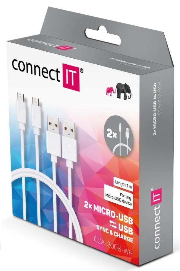CONNECT IT Wirez Micro USB - USB, biely, 1 m (2 ks v balení)