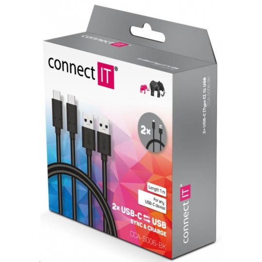 CONNECT IT Wirez USB-C (typ C) -> USB-A, USB 3.1 Gen 1, čierna, 1 m (2 ks v balení)