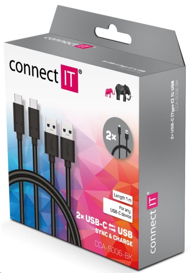 CONNECT IT Wirez USB-C (typ C) -> USB-A, USB 3.1 Gen 1, čierna, 1 m (2 ks v balení)
