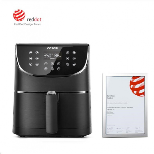 Dizajn teplovzdušnej fritézy COSORI CP158-AF bol navrhnutý v Kalifornii. Vďaka svojej praktickosti, funkciám, ovládaniu aj prehľadnému dotykovému naklonenému LED displeju sa ľahko prístupnými tlačidlami získal aj prestížne ocenenie Red Dot Award za najlepší dizajn.