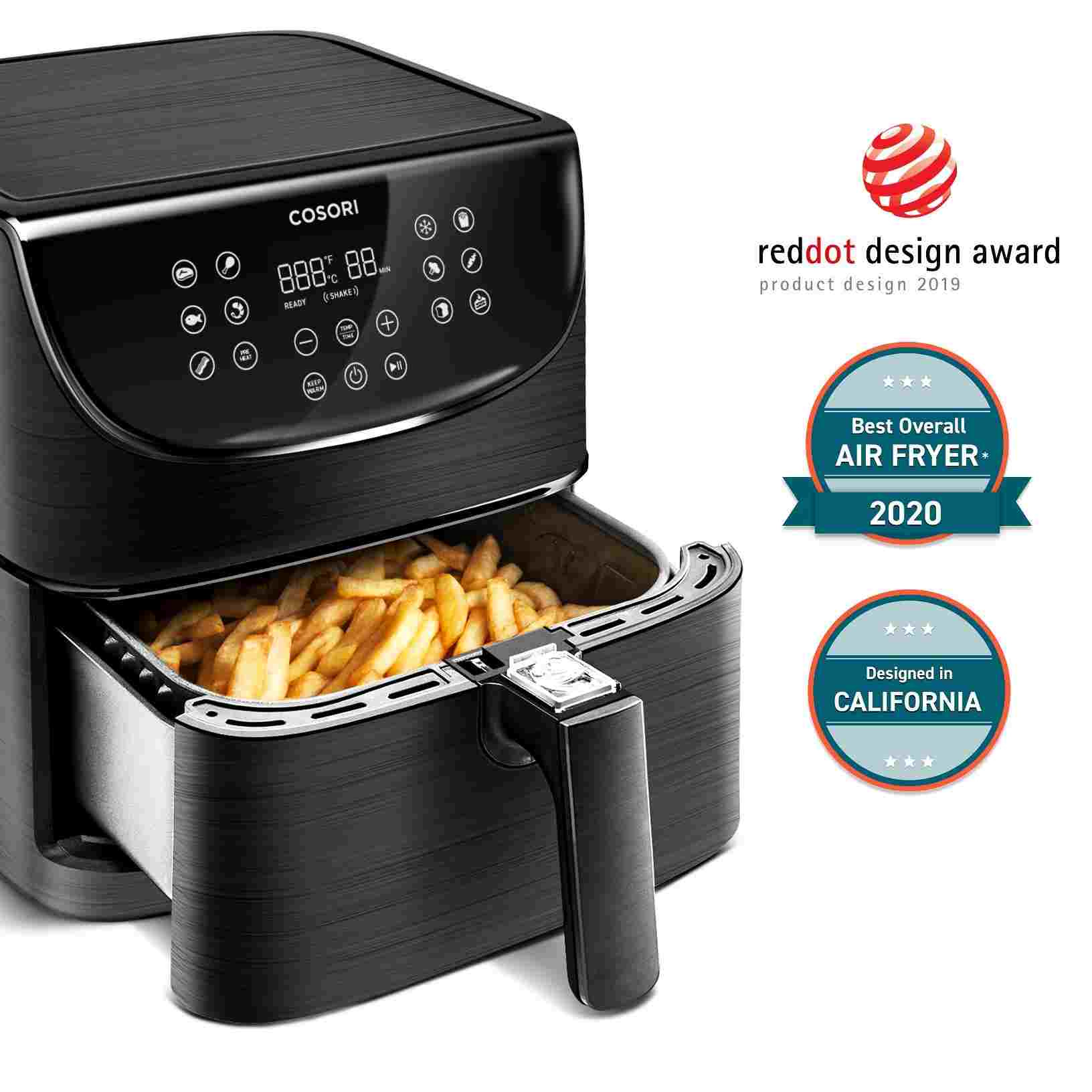 Dizajn teplovzdušnej fritézy COSORI CP158-AF bol navrhnutý v Kalifornii. Vďaka svojej praktickosti, funkciám, ovládaniu aj prehľadnému dotykovému naklonenému LED displeju sa ľahko prístupnými tlačidlami získal aj prestížne ocenenie Red Dot Award za najlepší dizajn.