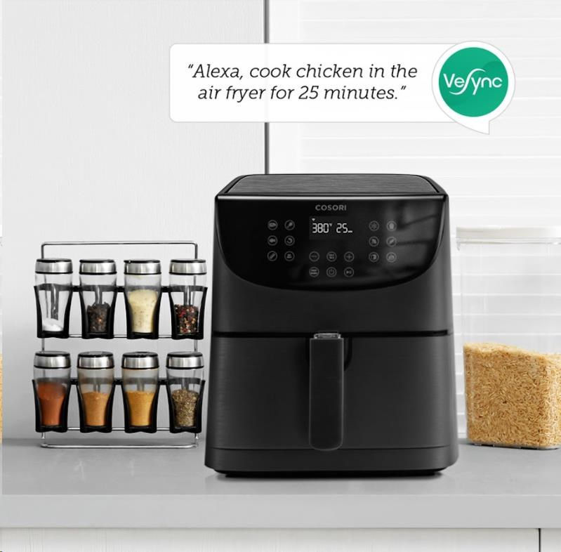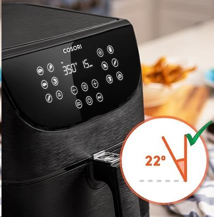 Teplovzdušná fritéza COSORI CP158-AF má 6l varný priestor a 5,5l kôš s praktickým štvorcovým tvarom, vďaka čomu uspokojí aj početnejšie domácnosti. S výkonom 1700 W je fritéza extrémne výkonná, čo skracuje dobu varenia a šetrí tak elektrickú energiu. Vďaka veľkosti varného priestoru fritézy je možné pripraviť napríklad aj celé 3kg kura v kuse, ktoré by sa do fritézy s kruhovým košom alebo objemom 3-4l zmestilo len veľmi ťažko.