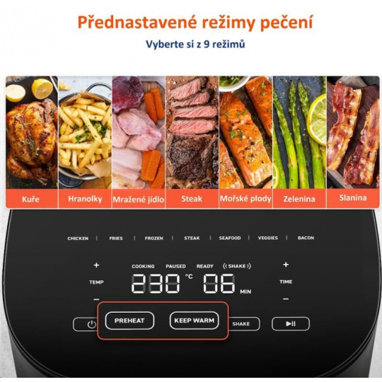PREDHRIATIE - predhreje fritézu, čím urýchľuje prípravu jedla a udržuje ho svieži
