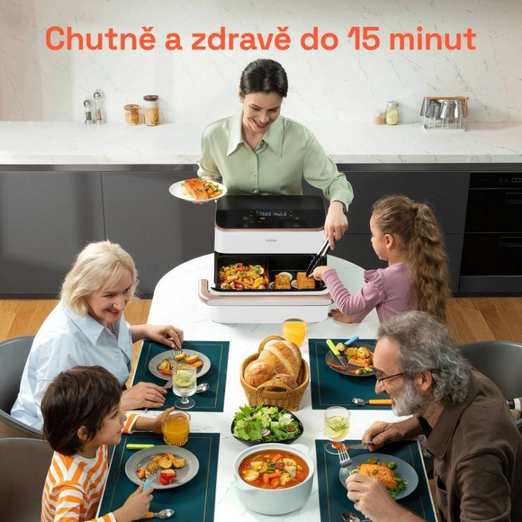 Inteligentná teplovzdušná fritéza Cosori TwinFry poskytuje maximálny priestor na varenie pre veľké rodiny alebo stretnutia a je doslova nabitá funkciami, ktoré umožňujú čo najrýchlejšie a najjednoduchšie varenie. V koši s objemom 10 litrov môžete pripravovať veľké kusy mäsa, celú hydinu, jahňacie mäso alebo mega porcie hranolčekov. Skutočným tromfom je možnosť rozdeliť kôš na dva 5-litrové koše, takže môžete pripravovať hlavné jedlo a prílohu oddelene. Vďaka funkcii Sync navyše fritéza zosúladí prípravu oboch, takže príprava sa dokončí v rovnakom čase a vy budete mať jedlo dokonalé, čerstvé a chutné. Fritéza obsahuje 4 výhrevné telesá s celkovým výkonom 2800 W. Vďaka hornému aj spodnému ohrevu nie je potrebné jedlo počas prípravy pretrepávať a nie je potrebné fritézu predhrievať. Maximálna teplota bola zvýšená na 240 °C, takže fritéza zvládne aj grilovanie. Jedlo môžete pripravovať oveľa zdravším spôsobom ako pri bežných spôsoboch prípravy, ako je napríklad vyprážanie v oleji. Napríklad hranolky môžete pripraviť len s jednou polievkovou lyžicou oleja. V porovnaní s pečením v rúre fritéza zohrieva oveľa menší priestor, a tak spotrebuje len zlomok elektrickej energie. Cosori TwinFry ponúka 6 všestranných programov, ktoré pokrývajú všetky klasické spôsoby prípravy jedál. Od pečenia mäsa alebo zeleniny, sladkého a slaného pečenia, grilovania, fritovania alebo prípravy mrazených jedál. Fritéza je navyše inteligentná, takže ju môžete ovládať na diaľku prostredníctvom aplikácie a mať prehľad o tom, kedy je hotová, zatiaľ čo vy potrebujete dokončiť prácu alebo zabaviť deti. Fritéza zaberá prakticky len plochu koša, takže sa hodí do všetkých kuchýň. Fritovací kôš sa ľahko čistí a možno ho umývať v umývačke riadu. V balení nájdete praktické kliešte na bezpečnú manipuláciu s potravinami.