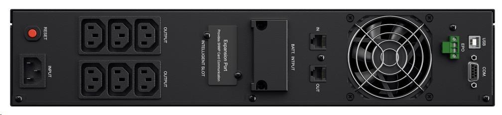 | Dodávka zahŕňa | UPS, Používateľská príručka, Rackmount koľajnice, Úchyty na montáž do stojana, Telefónny kábel, Kábel USB, Sériový kábel (RS232), M5X8L (8), M5X12L (12), Plastové podložky (8) Zaslepovacia doska (12), CD so softvérom PowerPanel® Business Edition. Gumové podložky pre UPS(12) |