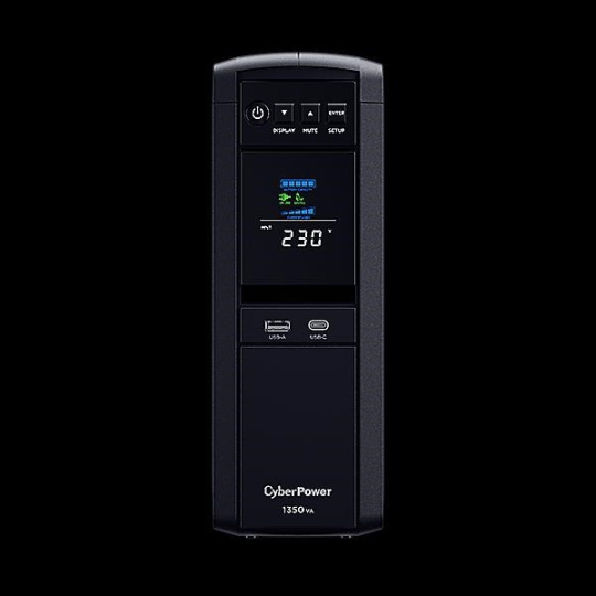 CyberPower CP1350EPFCLCD výstup vo forme čistého sinusu chráni stredné až špičkové počítačové systémy, servery a sieťový hardvér, ktoré používajú konvenčné zdroje napájania a zdroje s aktívnou korekciou účinníka (PFC). Táto UPS navrhnutá s technológiou GreenPower UPS™ na zlepšenie prevádzkovej účinnosti a minimalizáciu spotreby energie prináša významné úspory nákladov na energiu v porovnaní s konvenčnými systémami UPS. UPS poskytuje automatickú reguláciu napätia (AVR) na udržanie stabilného napätia pre pripojené zariadenia. Produkt je vybavený ochranou dátovej linky s vysokorýchlostným prenosom pre ochranu komunikačného zariadenia pred prepätiami/zipsami a rýchlosťou dátového prenosu 1 Gbps. S naklápaceovým farebným LCD displejom môžu používatelia na prvý pohľad sledovať kľúčové informácie o napájaní a batérii. Softvér na správu napájania PowerPanel umožňuje používateľovi vykonávať monitorovanie a konfiguráciu v reálnom čase.