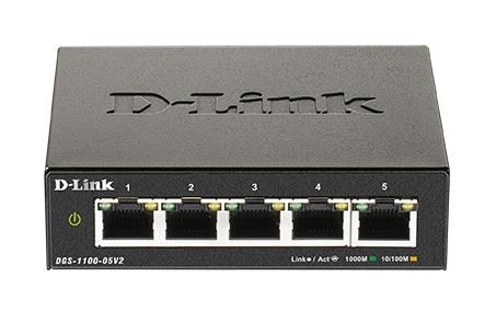 D-Link DGS-1100-05V2 5-portový gigabitový inteligentný riadený prepínač, bez ventilátora