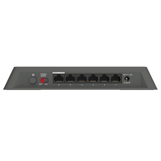 6portový multigigabitový nespravovaný prepínač DMS-106XT Turbo-nabitý multigigový prepínač pre prácu alebo zábavu 5 x 2.5 Gb/s ethernetové porty pre neobmedzené pripojenie Wi-Fi 6 routerov alebo prístupových bodov 1 x 10 Gb/s ethernetový port pre uplink alebo pripojenie k serveru NAS Inteligentný režim Turbo poskytuje kvalitu služieb (QoS) a prioritu na základe portov pre neprerušované online hranie a streamovanie v rozlíšení 4K Konštrukcia s energetickou účinnosťou pre nízku spotrebu energie LED dióda pohodlne indikuje stav rýchlosti portu Odolný matný sivý kryt z hliníkovej zliatiny Bezventilátorová prevádzka pre zvýšenú spoľahlivosť a bezhlučný výkon 6portový multi-gigabitový neriadený prepínač - Full 2.5 Gb/s ethernetové porty na neobmedzené pripojenie k routeru Wi-Fi 6 alebo AP - 5 x 802.3bz 2.5G porty - 1 x 802.3an 10G port - 10 Gb/s port pre NAS alebo Uplink pripojenie - Prvotriedna energetická účinnosť - Automatické alebo konfigurovateľné MDI/MDIX - 802.3x Flow Control - 802.1p QoS - 802.3az Energy-Efficient Ethernet (EEE) - Prepínacia kapacita 45 Gb/s - Spôsob prenosu: Store-and-Forward - Rýchlosť filtrovania/preposielania paketov: Gigabit Ethernet:1 488 000 pps na port - Tabuľka adries MAC 4K - MTBF 489 941 hodín - Prevádzka bez ventilátora - Odolný kryt z hliníkovej zliatiny len pre stolové počítače - Voliteľný režim pre výkon s nízkou latenciou - Rozmery (D x Š x V) 217 x 163 x 33 mm - Hmotnosť 680 g..