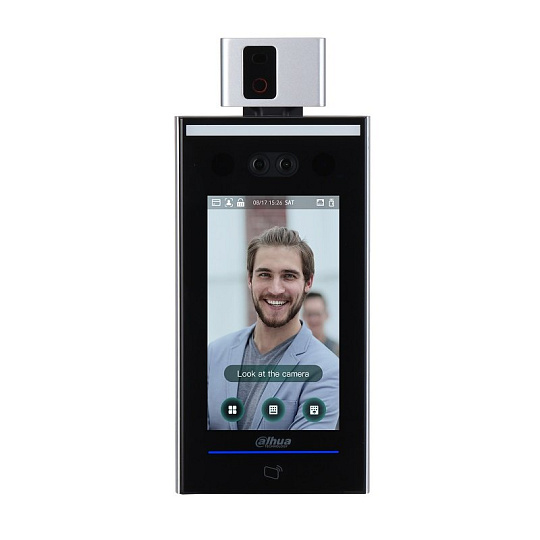 IP prístupová jednotka s biometrickým snímačom tváre, detekciou telesnej teploty a rúška, RFID MIFARE 13,56 MHz, kapacita 100 000 tvárí, 100 000 kariet, 300 000 udalostí, komunikácia s PC cez TCP/IP, podpora DSS Express, zvuková a LED signalizácia, 1x NO/NC relé zámku, 1x vstup dverného kontaktu, 2x relé výstup alarmu, 1x relé vstup odchodového tlačidla, Wiegand 26 vstup/výstup pre pripojenie podružnej čítačky, napájanie 12 V DC (zdroj je súčasťou balenia), rozmery 313 x 130 x 37 mm, interiérové použitie