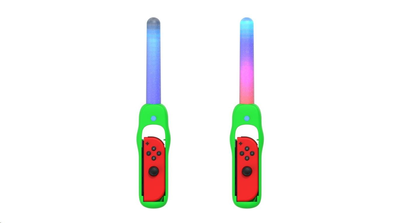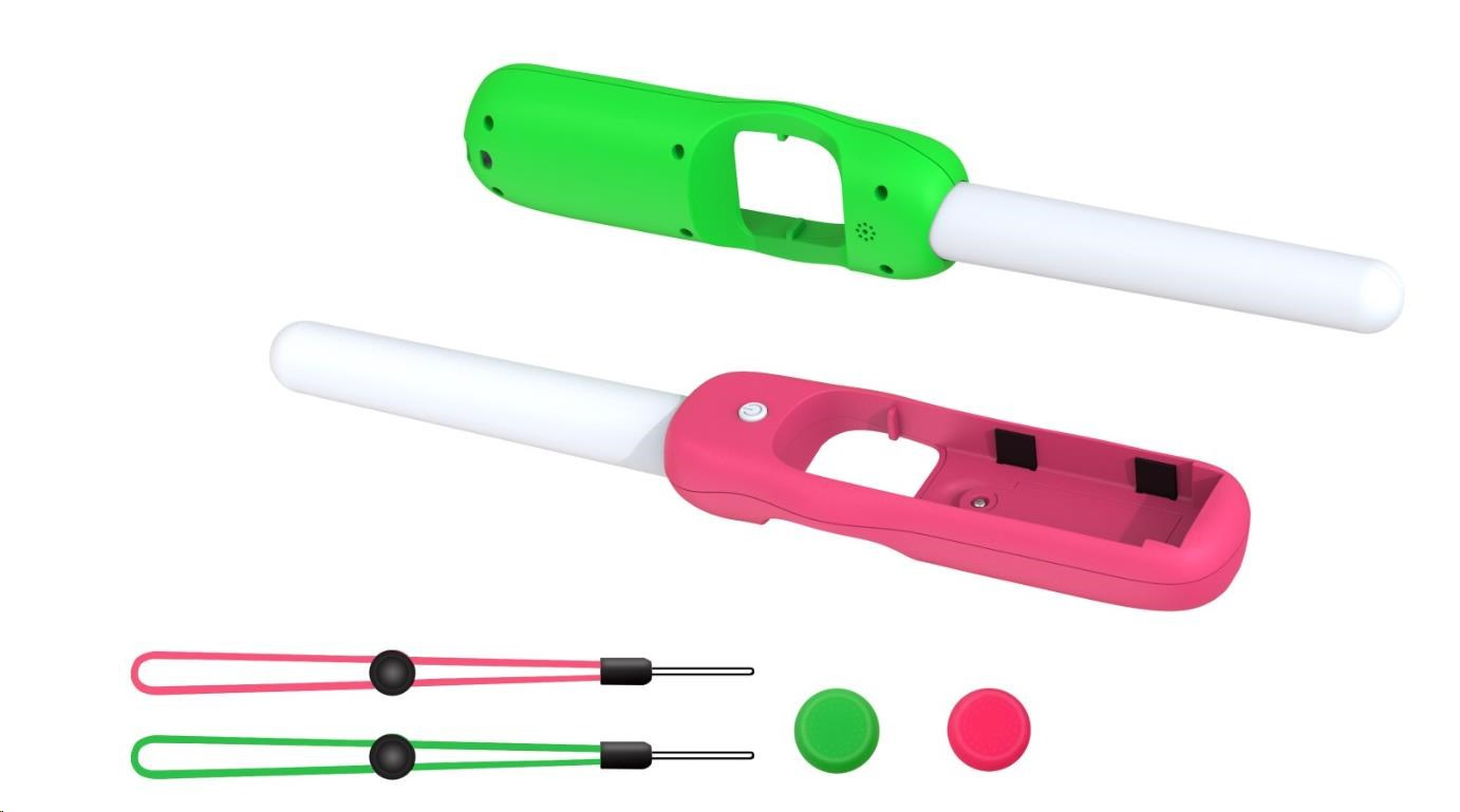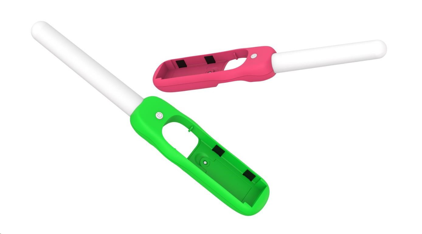 Súprava Dance 'N' Play obsahuje 2x zvukovo citlivé LED svetelné tyčinky s ružovou a zelenou rukoväťou a remienkami na zápästie. Zvukovo citlivé LED svetelné tyčinky s viacfarebným efektom dúhového podsvietenia budú pracovať, pulzovať, svietiť a tancovať na akýkoľvek zvuk. Či už ide o hudbu alebo zvuky hier, súprava Dance 'N' Play rozžiari vašu izbu.