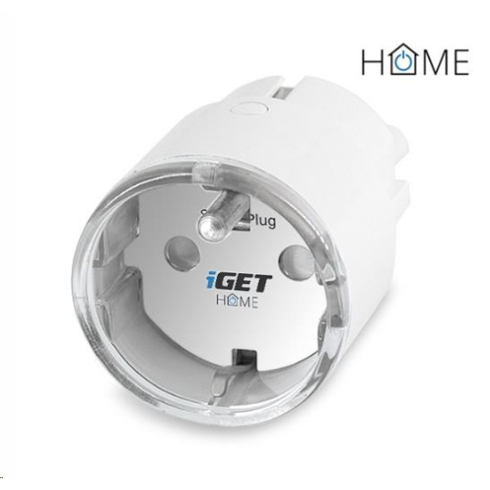 Chytrá zásuvka ovládaná cez WiFi, kompatibilná s aplikáciou iGET HOME, Google Assistant a Amazon Alexa, meranie spotreby energie, max. zaťaženie 3680 W, aplikácia pre Android a iOS zadarmo v slovenčine, nastavenie časovačov, štatistiky.