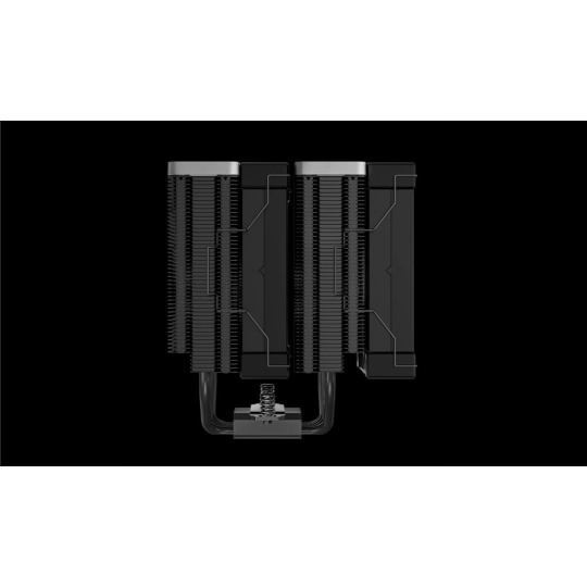 DeepCool AK620 ZERO DARK je celá čierna edícia dominantného vysoko výkonného chladiča CPU AK620. Rovnaké materiály prémiovej kvality so šiestimi pokročilými medenými tepelnými trubicami, hustý chladič s dvojitou vežou a dve tiché ventilátory FDB tvoria výkonnú víťaznú kombináciu pre vysoko výkonné chladenie v dizajne ZERO DARK raven.