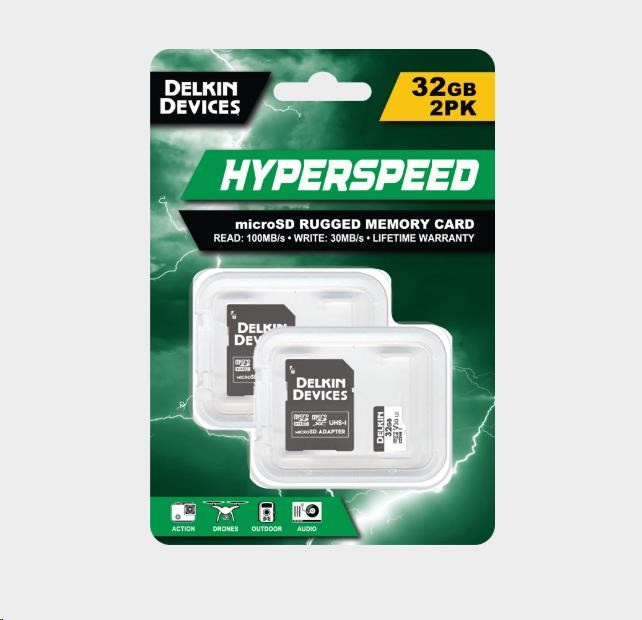 Delkin microSDHC Trail Cam Hyperspeed R100/W75 (V30) 32GB (2-pack)
