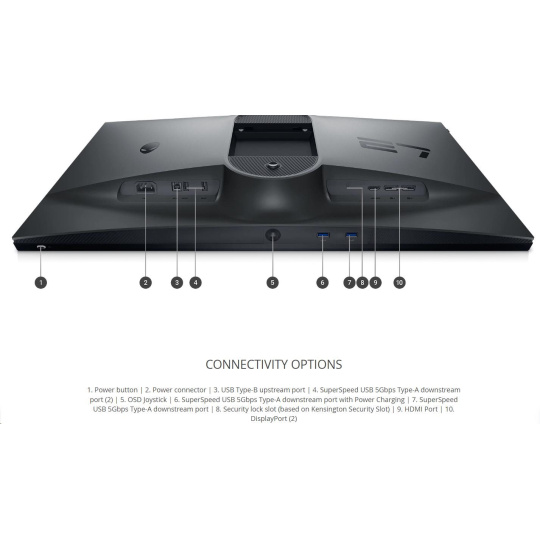 | FPS Mode, RTS Mode, Mercury free, arsenic-free glass, Sports Mode, RPG Mode, Game Enhance Mode, Low Blue Light technology, Dell ComfortView Plus, flicker-free panel, console mode, 3 customizable game modes, AlienVision |