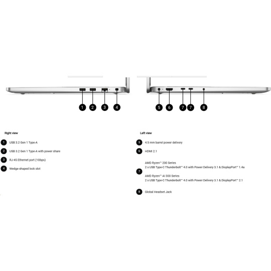 | 3-cell, 55 Wh, ExpressCharge™ Capable, ExpressCharge™ Boost Capable, 65W AC adapter, USB Type-C |