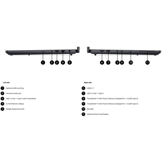 | 4 cell, 64Whr, standard battery, 100W AC adapter, USB Type C |