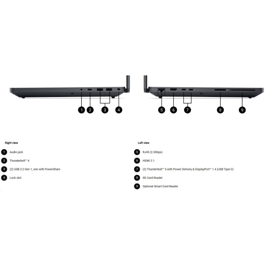 | 6 cell, 96Whr, ExpressCharge™ Capable, standard battery, 280W AC adapter, USB Type C |