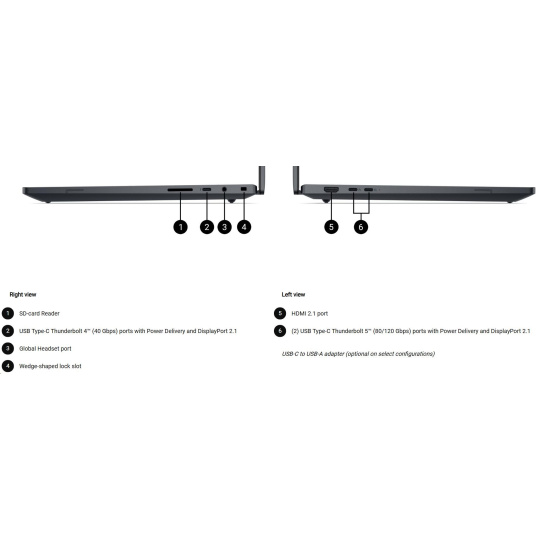 | 6 cell, 96Whr, ExpressCharge™ Capable, standard battery, 165W AC adapter, USB Type C |