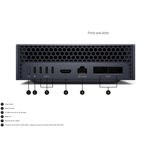 | LAN/NIC | Network (RJ-45, 10GbE), ConnectX-7 Smart NIC (2x 200G QSFP, 1 je potrebný na pripojenie k inému Dell Pro Max s GB10) |