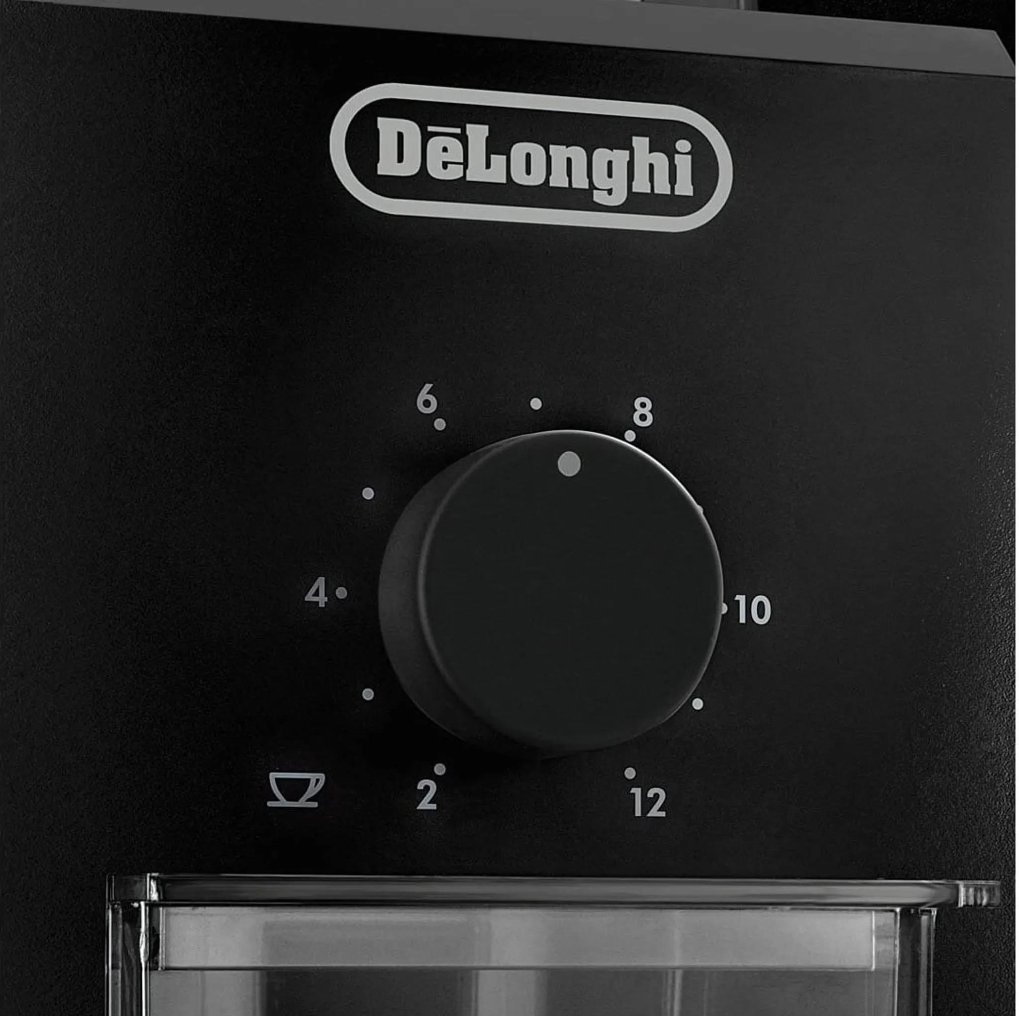 DeLonghi KG79 mlýnek na kávu, 110 W, 16 stupňů nastavení hrubosti, kontrolka, ocelové kameny, bezpečnostní systém, černý