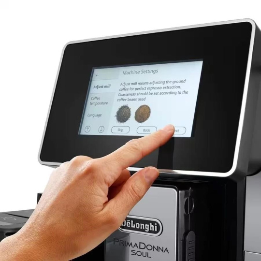 DeLonghi PrimaDonna Soul ECAM 610.55.SB automatický kávovar, 1450 W, 19 bar, vestavěný mlýnek, chytrý, mléčný systém