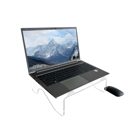 Stojan na notebook vyrobený z vysoko kvalitného priehľadného akrylu v modernom minimalistickom dizajne. Jeho elegantný a jednoduchý dizajn zabezpečuje stabilitu bez rušivých prvkov. ? Vysoko kvalitné 6 mm číre akryl ? Platforma so sklonom 5 ° pre optimálny komfort sledovania ? Úložný priestor (max. 290 mm široký) pod stojanom, ideálny pre dokumenty alebo klávesnicu ? Robustná konštrukcia s nosnosťou až 15 kg ? Gumené nožičky pre stabilitu a ochranu pracovnej plochy S DESQ stojanom na notebook nastavíte svoj displej do ideálnej výšky, čo podporuje zdravé ergonomické držanie tela a pomáha predchádzať bolestiam chrbta, krku a očí.