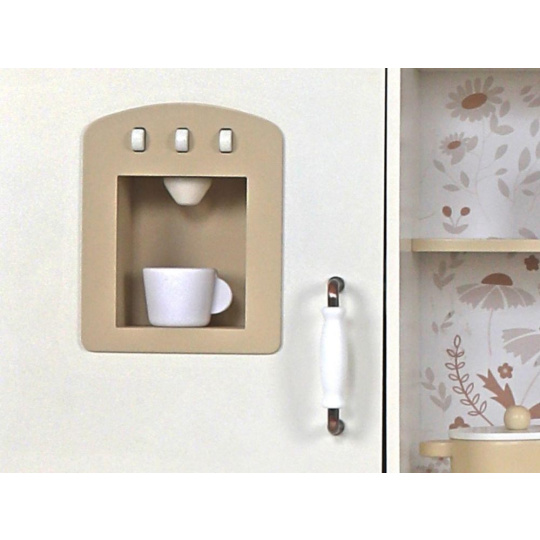 Dětská dřevěná kuchyňka se zvuky - krémová s květy