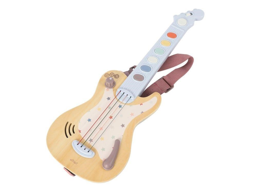 Detská elektrická gitara, v kombinácii jemných pastelových farieb s farbou prírodného dreva, premení každé dieťa na rokenrolovú hviezdu. Hudobná hračka v podobe elektrickej gitary prebúdza lásku k hudbe u každého dieťaťa, zdokonaľuje motorické zručnosti, rozvíja sluchové vnímanie, fantáziu a kreativitu, umožňuje deťom hrať role. Pre jednoduché prenášanie je súčasťou gitary praktický popruh.