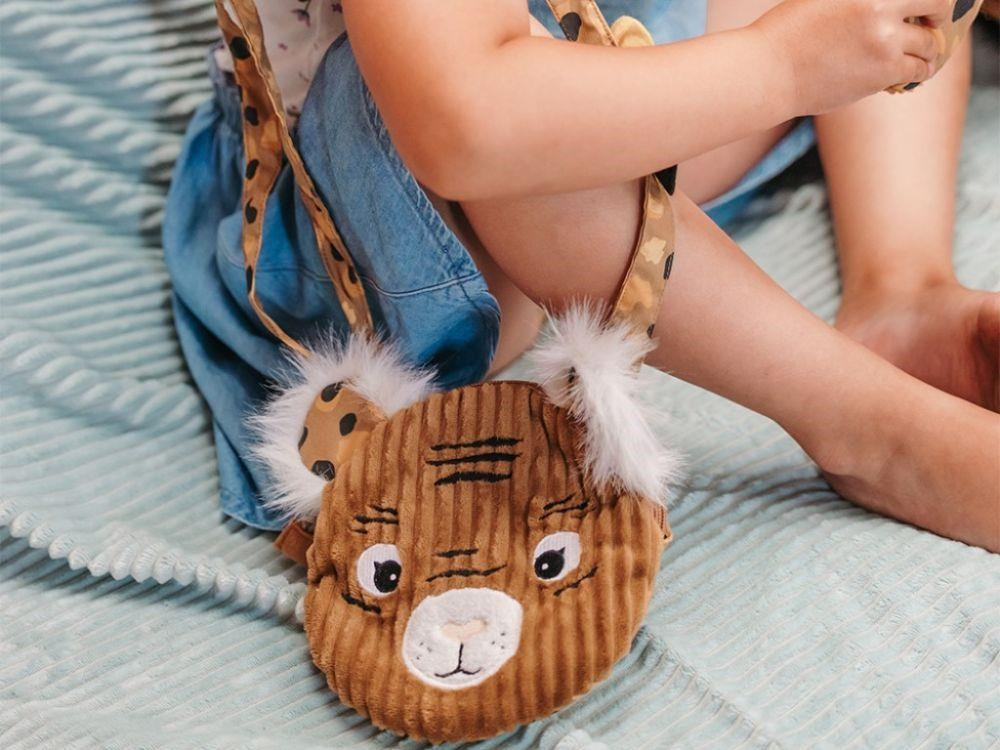 Detská kabelka v podobe roztomilého tigra je malým zavazadlom, do ktorého si deti uloží všetko potrebné na pobyt vonku, na výlet aj na dovolenku. Kabelka pre deti má nastaviteľný ramenný popruh a zapínanie na zips.