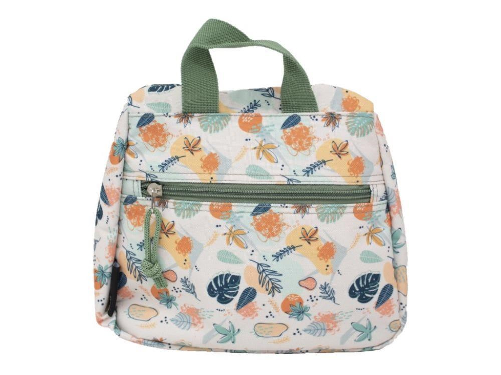 Kosmetická taška na zavešenie, v neutrálnej zelenej farbe, s roztomilým lenochodom, je originálnou detskou toaletnou taškou na cesty. Veľmi pevná a odolná kozmetická taška, so veľkým množstvom vreciek a odnímateľným zrkadlom, pohodlne pojme hygienické potreby vašej dievčatka alebo chlapca. Vodoodpudivý materiál umožní deťom používať tašku v kúpeľni aj vo vani. Vďaka háčiku ju jednoducho zavesíte na háčik alebo vodovodnú batériu a deti majú svoje toaletné potreby pohodlne po ruke.