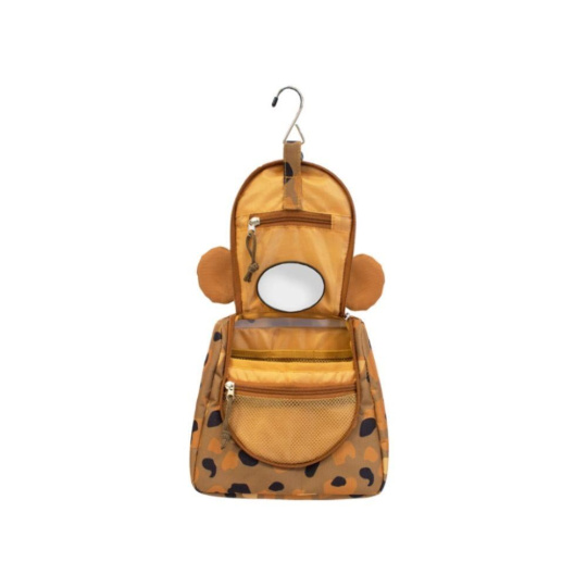 Toaletná taška na zavesenie tigra je veľmi pevná a odolná kozmetická taška, so veľkým množstvom vreciek a s odnímateľným zrkadlom. Vodoodpudivý materiál umožní deťom používať tašku v kúpeľni aj v sprche, kde ju pomocou háčika jednoducho zavesíte na háčik alebo kohútik.