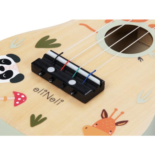 Kytara pre deti (ukulele) v farebnej kombinácii prírodného dreva a jemných pastelových farieb, s roztomilým motívom - so zvieratkami zo ZOO, premení každú holčičku aj chlapca na gitaristu. Hudobný nástroj v podobe detskej drevenej kytary, ktorú môžete aj naladiť, prebudí v deťoch lásku k hudbe, stimuluje zmysly, rozvíja detskú fantáziu a kreativitu.