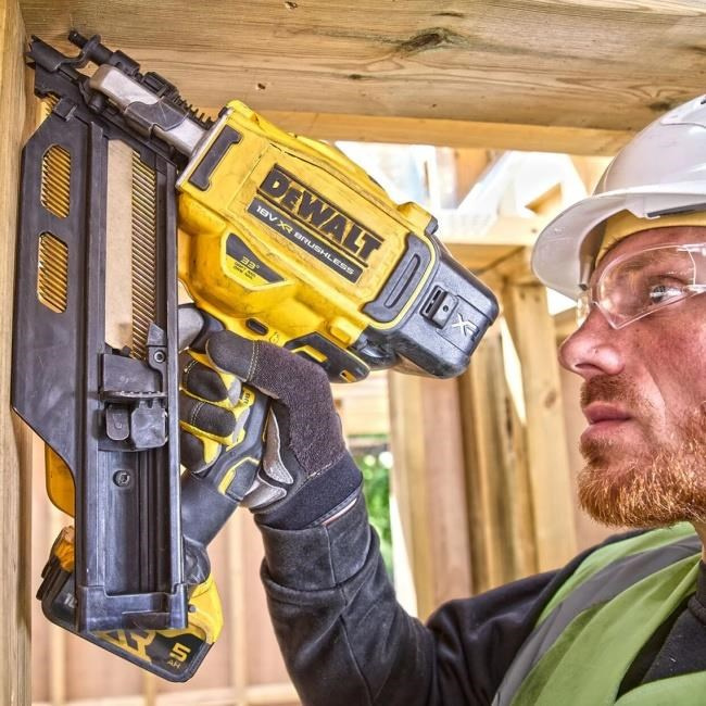 18V bezkartáčový motor pre dlhšiu životnosť, a väčšiu účinnosť a výkon, schopný zatĺkať hrebíky s kruhovou stopkou 90 mm do dreva strednej hustoty