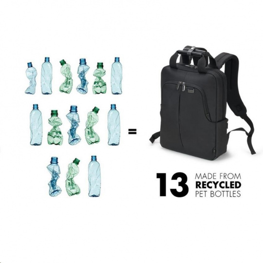 S batohom ECO Backpack Slim PRO cestujete "1. triedou". Batoh vás bude spoľahlivo sprevádzať všade, kam pôjdete, a spĺňa najvyššie štandardy kvality, funkčnosti a ochrany. Batoh Slim PRO je vyrobený z vysokokvalitného recyklovaného PET a chráni našu planétu - je ideálny pre ekologicky zmýšľajúcich spotrebiteľov. Hlavný materiál tvorí 13 recyklovaných PET fliaš. Vďaka zmyslu pre detail je táto taška DICOTA vaším najspoľahlivejším obchodným partnerom.