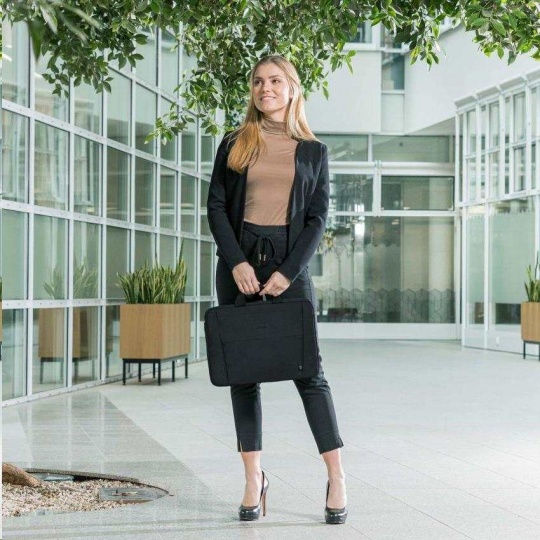 Eco Slim Case BASE je ľahké, tenké puzdro na notebook. Zariadenia medzi 15 a 15.6" sú dobre chránené v polstrovanej priehradke na notebook. Kufrík sa pohodlne prenáša vďaka polstrovanej rukoväti a nastaviteľnému ramennému popruhu. Dodatočná priehradka na zadnej strane je obzvlášť praktická na jednoduché ukladanie dokumentov. Smartfón alebo iné menšie predmety, ako sú káble, perá alebo nabíjačky, si môžete uložiť do praktického predného vrecka, aby ste ich mali vždy po ruke. Puzdro Eco Slim Case BASE je preto pre vás ideálne, ak ste stále na cestách a chcete podporiť recykláciu PET fliaš ekologickým puzdrom.