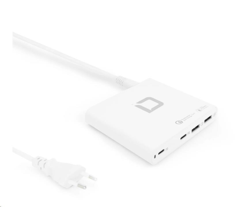 Príslušenstvo je možné používať vo viac ako 180 krajinách a je vybavené dvoma USB-C výstupmi s technológiou Power Delivery 3.0 a dvoma portmi USB-A s technológiou Qualcomm Quick Charge 4.0+. Maximálny výkon nabíjacej stanice je 120 W. Výstupné napätie (5 - 20 V) a nabíjací prúd (až 5 A) sa automaticky prispôsobujú pripojeným zariadeniam. Inteligentný riadiaci systém šetrí batériu a zároveň poskytuje spoľahlivú ochranu proti nadprúdu, prepätiu, zkratu a prehriatiu. Elegantný dizajn, kompaktný tvar a hmotnosť len 240 gramov - ideálny spoločník pre rýchle a efektívne získavanie energie doma, v kancelárii alebo na cestách. Súčasťou je plastová podpera, ktorá zabraňuje prehriatiu.