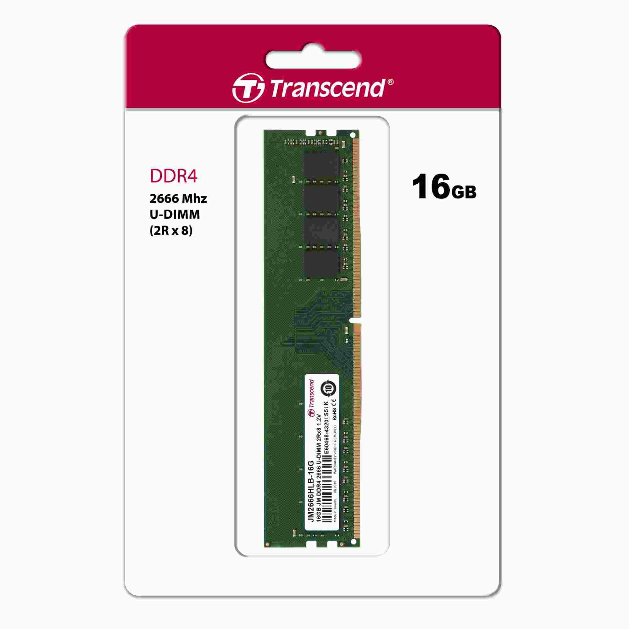 DDR4 DIMM 16GB 2666MHz TRANSCEND 2Rx8 1Gx8 CL19 1.2V