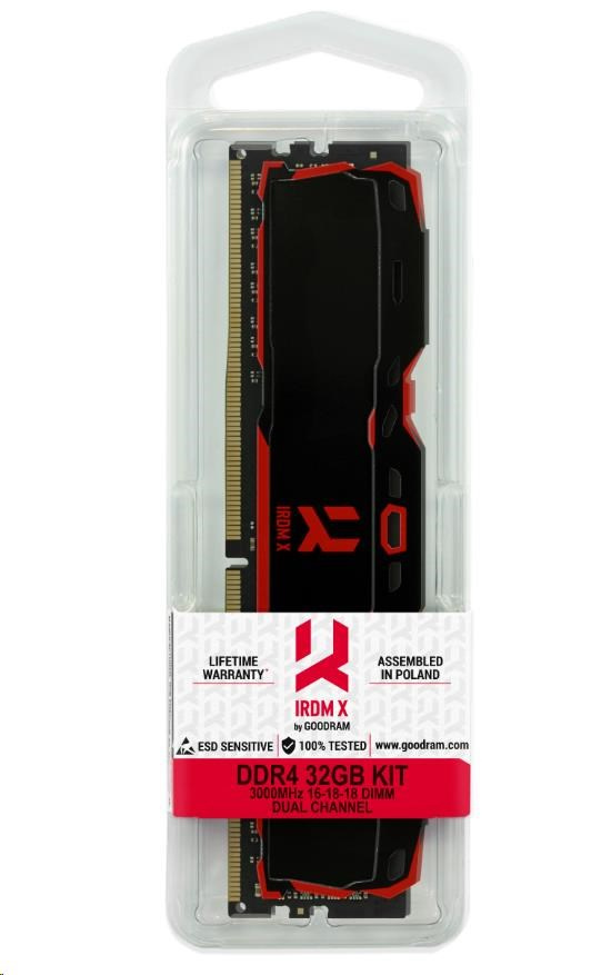 DDR4 16GB 3200MHz CL16 DIMM (Kit 2x8GB) GOODRAM IRDM X, čierna