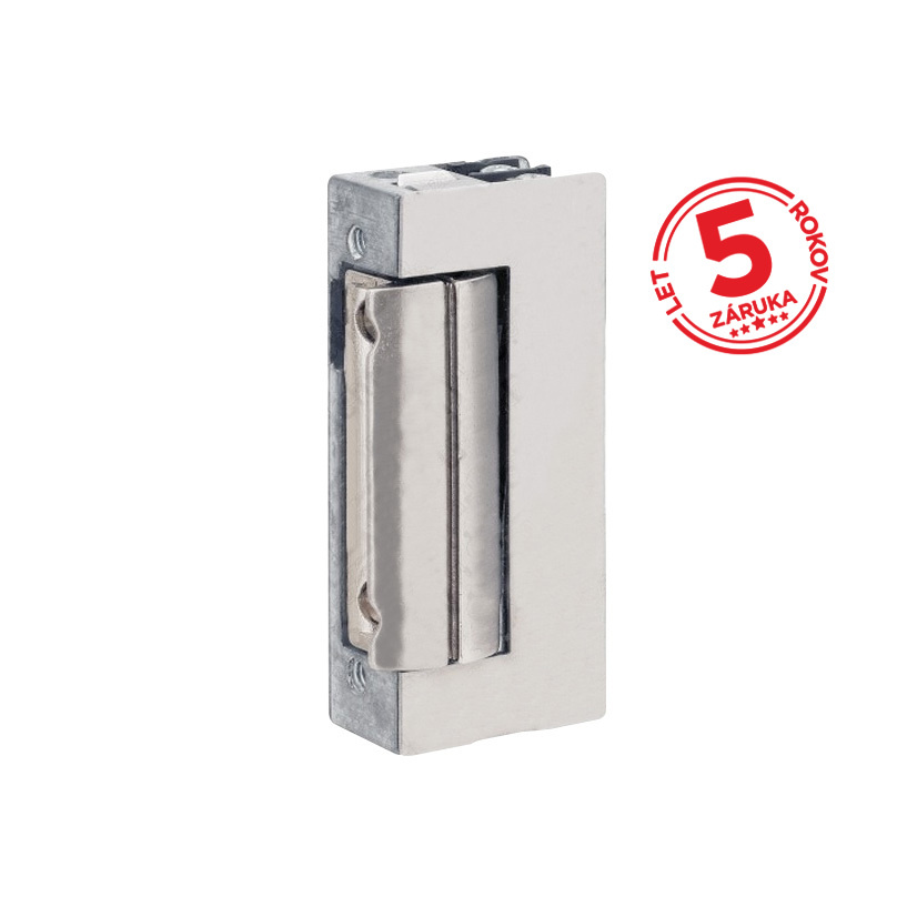 Elektrický zámok so skrytým momentovým kolíkom (zámok ostáva odistený až do opätovného privretia dverí), nastaviteľná západka, napájanie 6–12 V DC/AC 1500 mA, rozmery: 16,4 x 67 x 28 mm, bez lišty, záruka 5 rokov