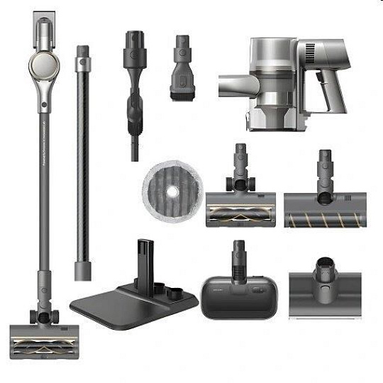 - Obsah balení: Hlavní modul vysavače, Kartáč na různé povrchy, Měkký válečkový kartáč, Motorový minikartáč, Široký kombinovaný nástroj, Štěrbinová hubice, Flexibilní adaptér, Nabíječka, Uživatelská příručka